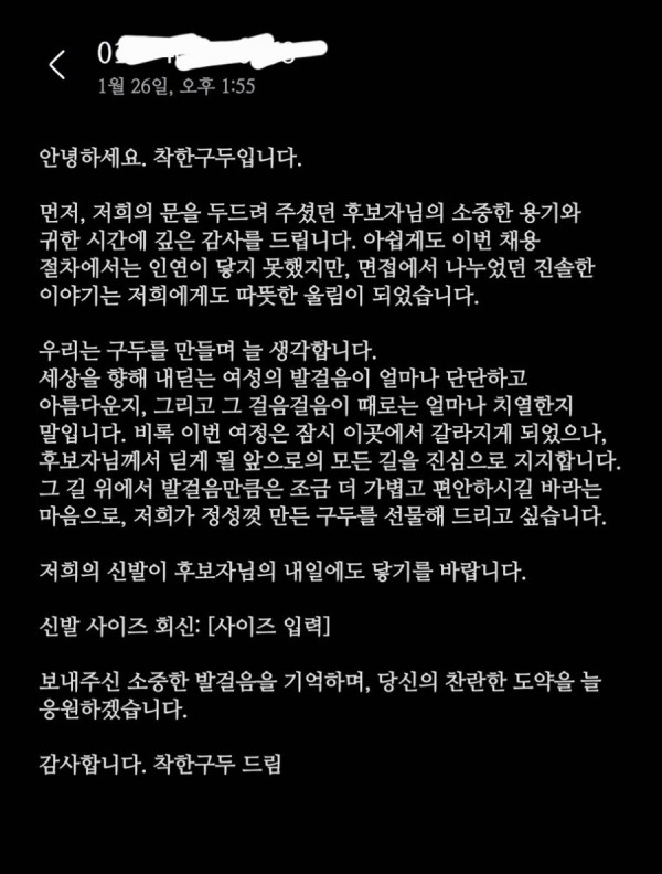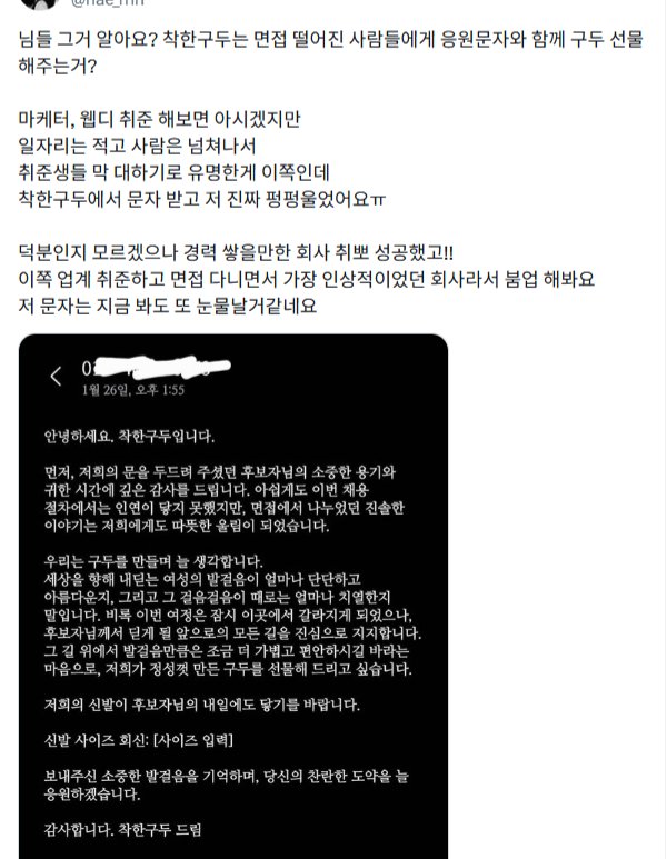 어떤 구두회사의 면접 탈락자 위로 방식