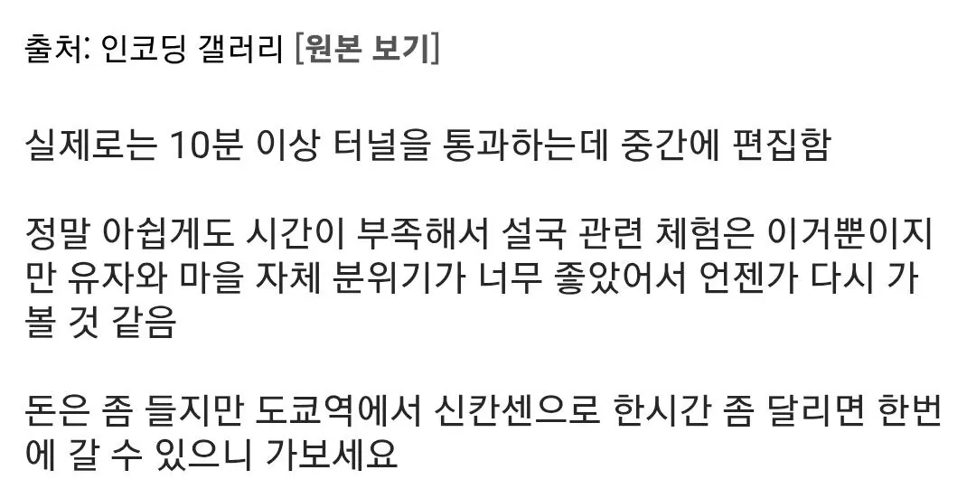 첫 문장으로 유명한 소설 '설국' 실제로 체험해본 디시인