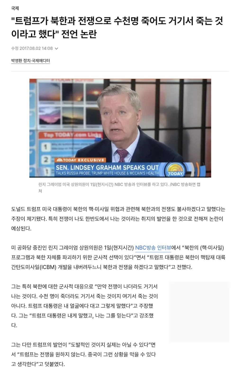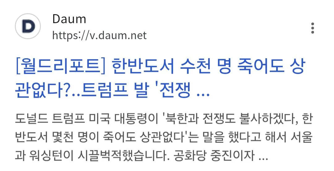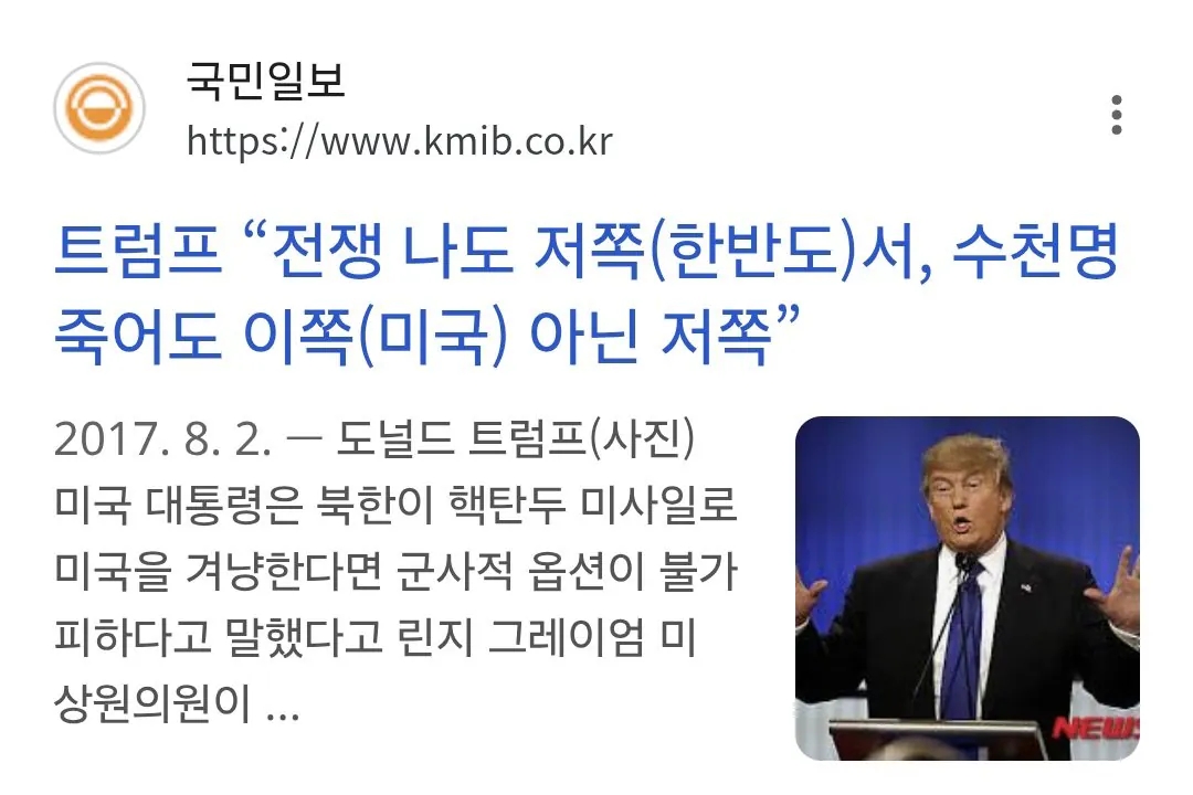 트럼프 "한반도서 전쟁 터져서 수천 명이 죽어도 상관없다"