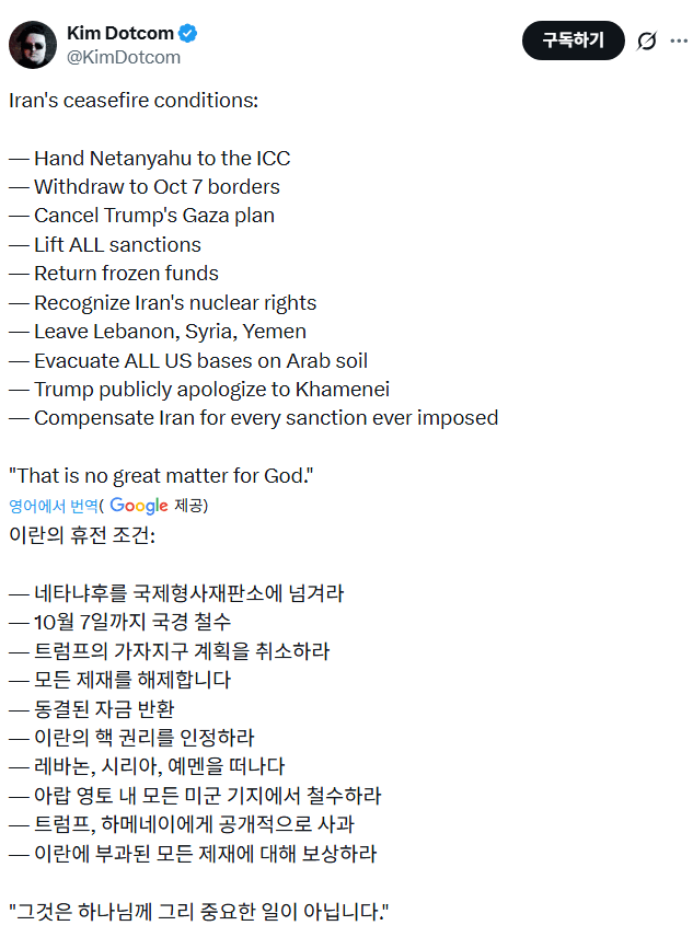 이란이 제시한 휴전 조건