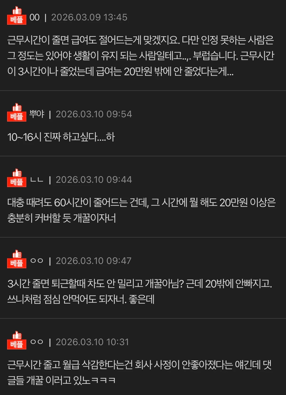 근무시간 3시간 줄었는데 20만원 삭감이면 원래 월급은 얼마일까