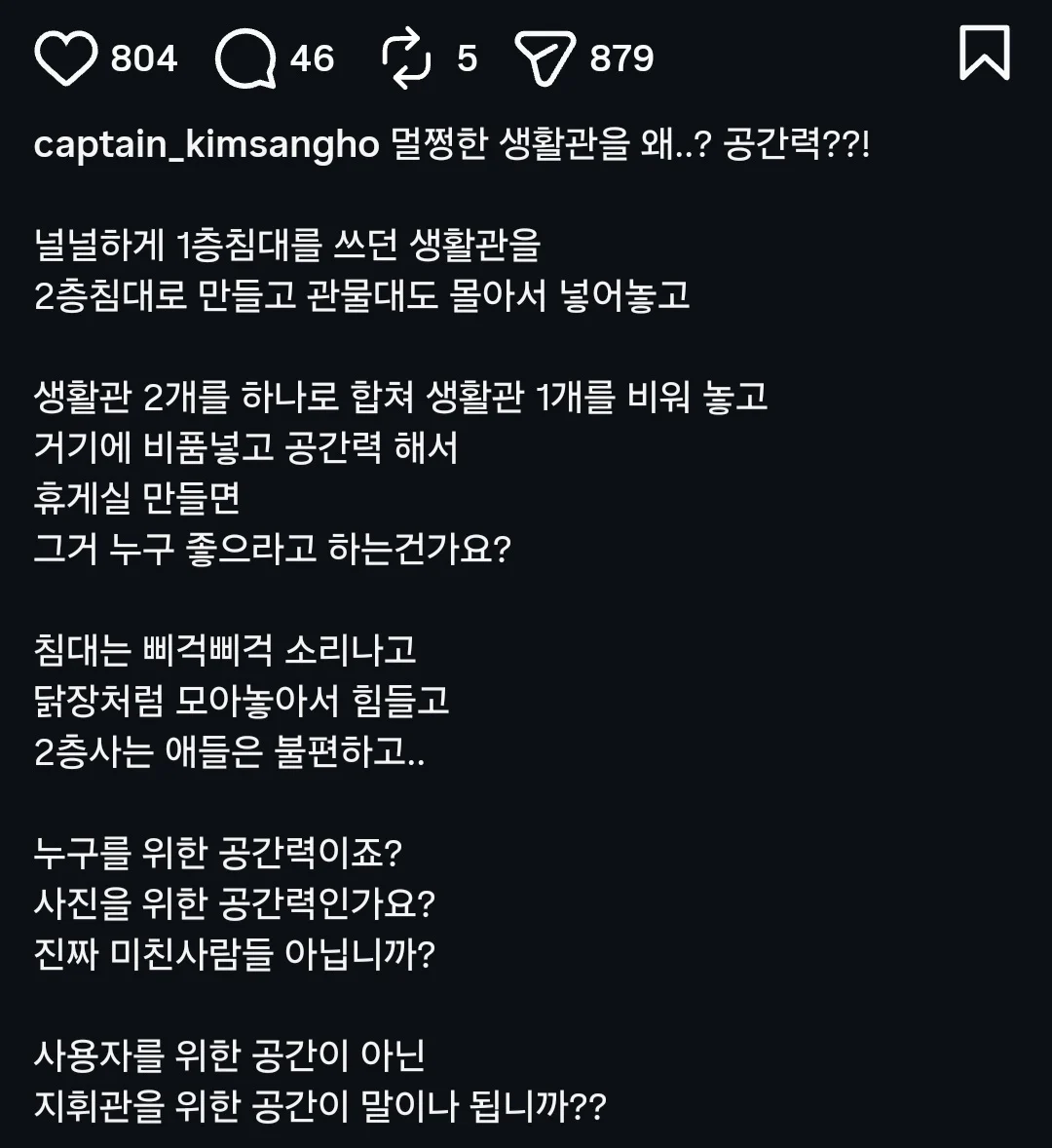 침대 생활관으로 생활해본 애들이 아니라도 알겠지만