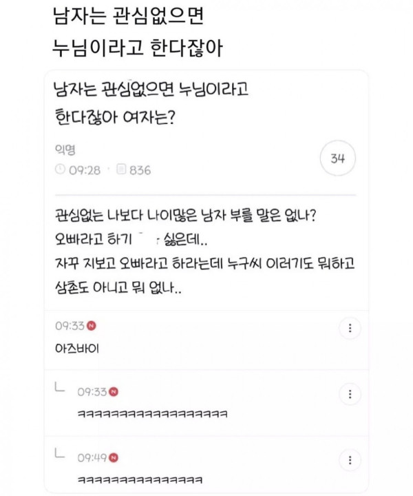 남자는 관심이 없으면 누님이라고 한다잖아