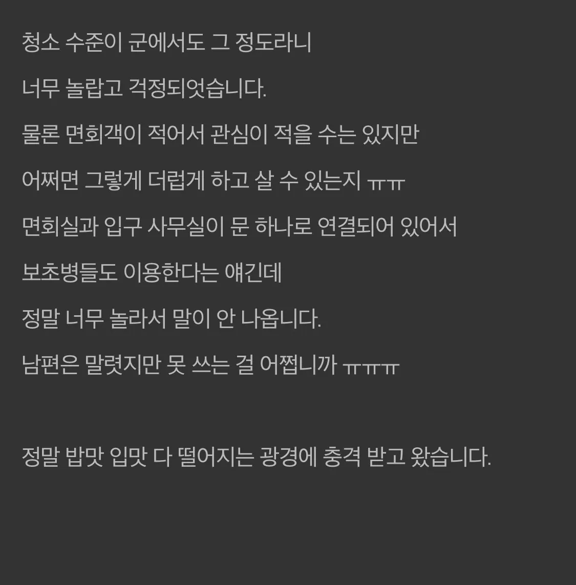 아들 군대 면회 갔다가 화장실 청소하고 왔어요