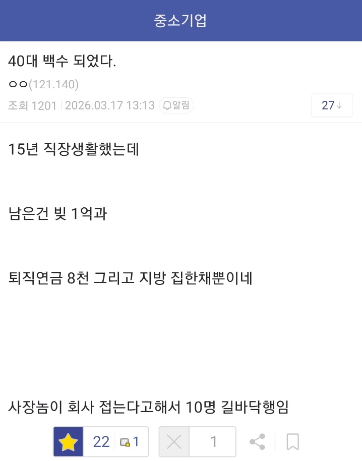 15년 직장 생활 한 40대 갑자기 백수가 되었다