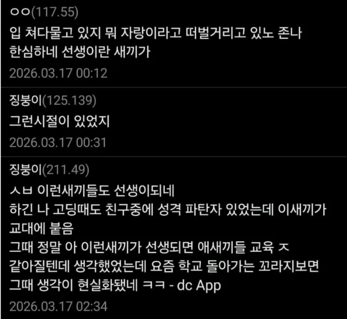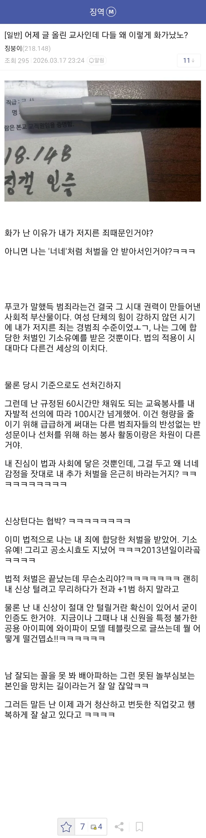 징역갤에서 신상 털어야된다, 저런 인간이 교사라니 말이 안된다는 글이 몇개 올라왔고