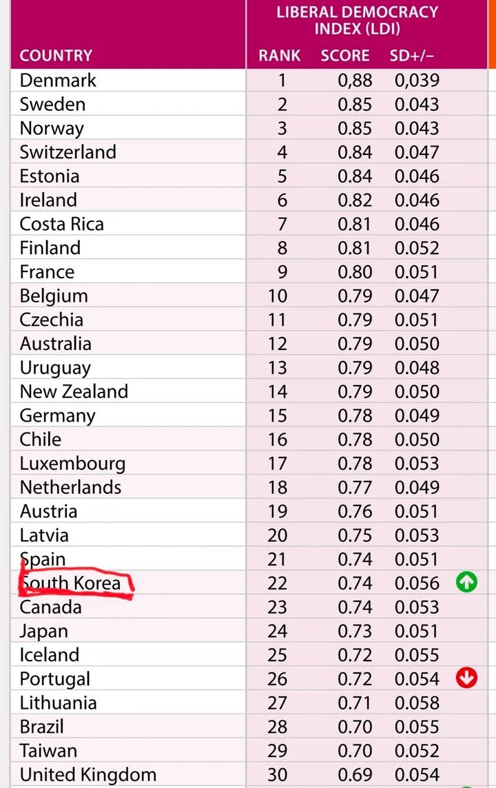 한국 민주주의 수준 41위 -> 22위 급상승