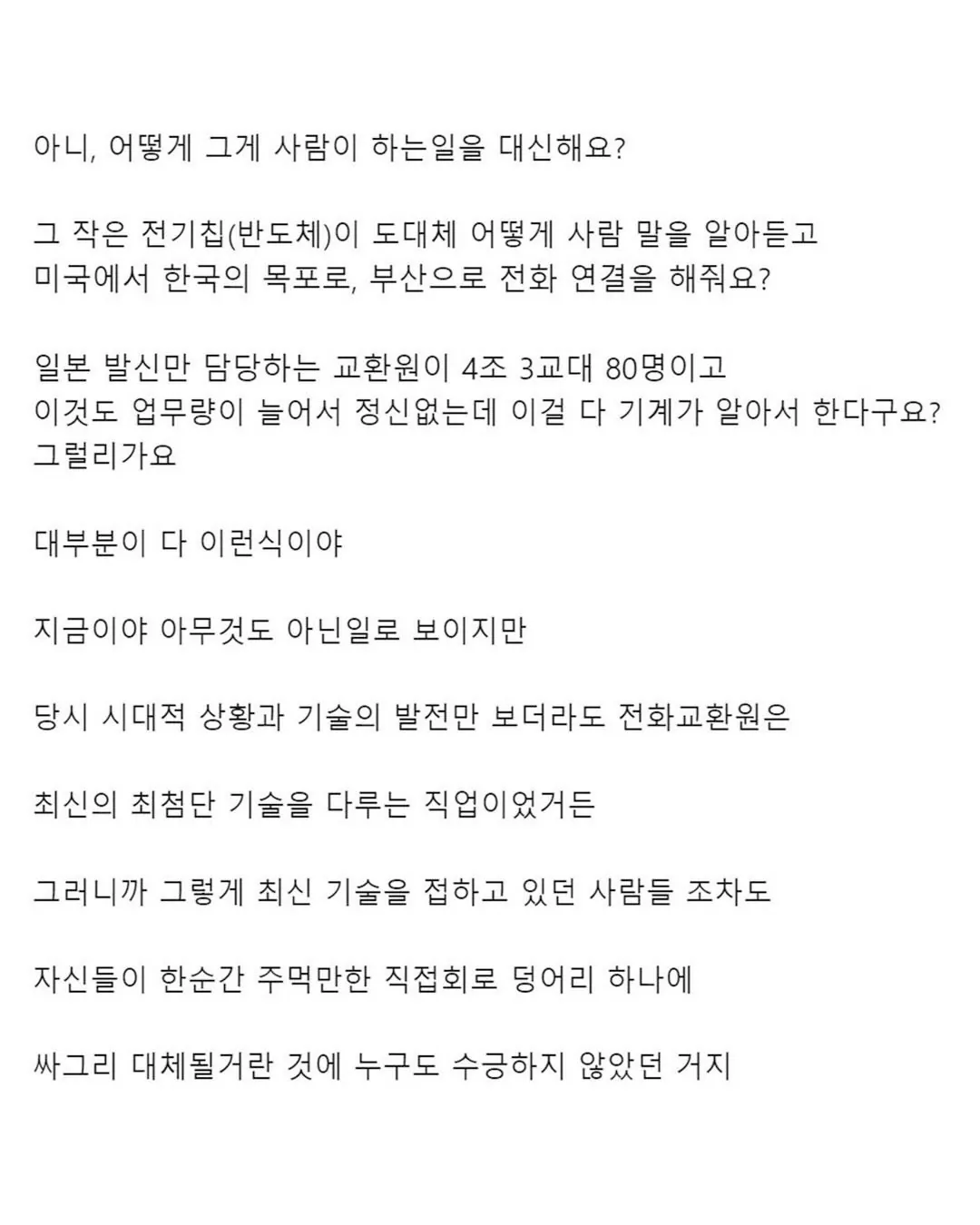 전화교환원 직업대체 당시 분위기
