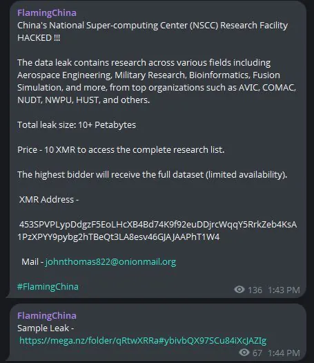 중국 국가 슈퍼컴퓨팅 센터 해킹