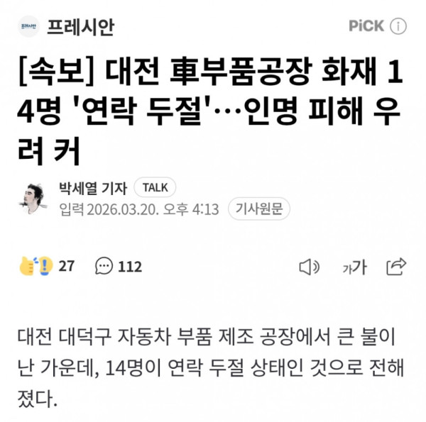 [속보] 대전 車부품공장 화재 14명 '연락 두절'…인명 피해 우려 커