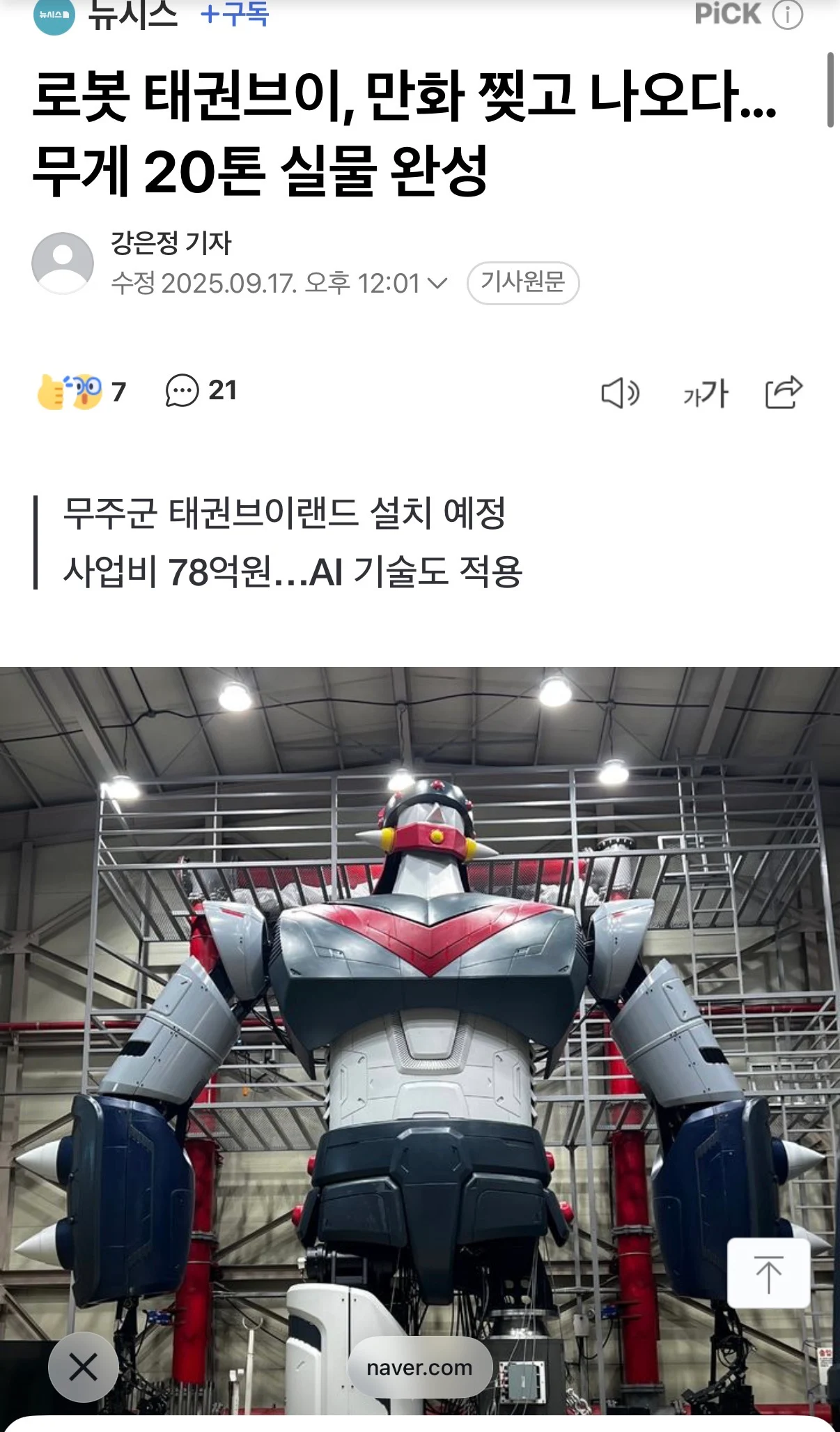 태권브이 20톤 실물제작 근황