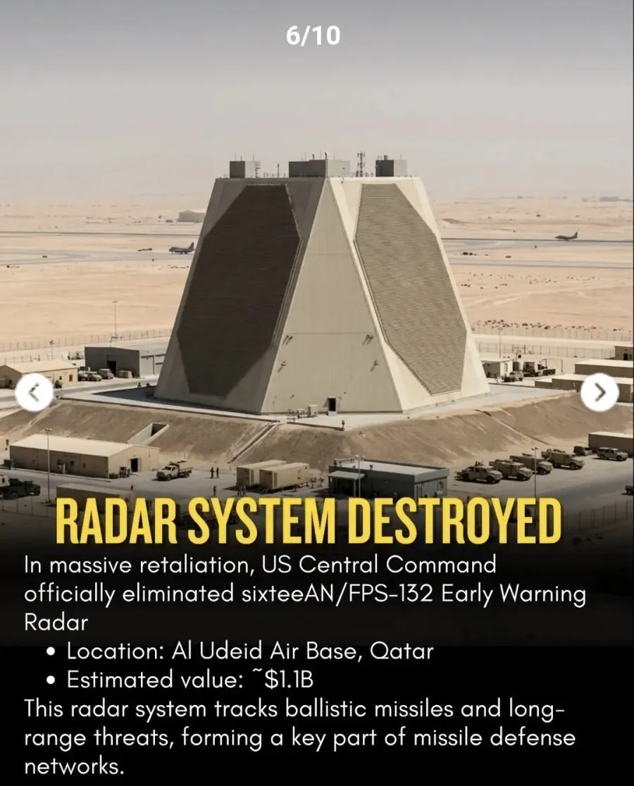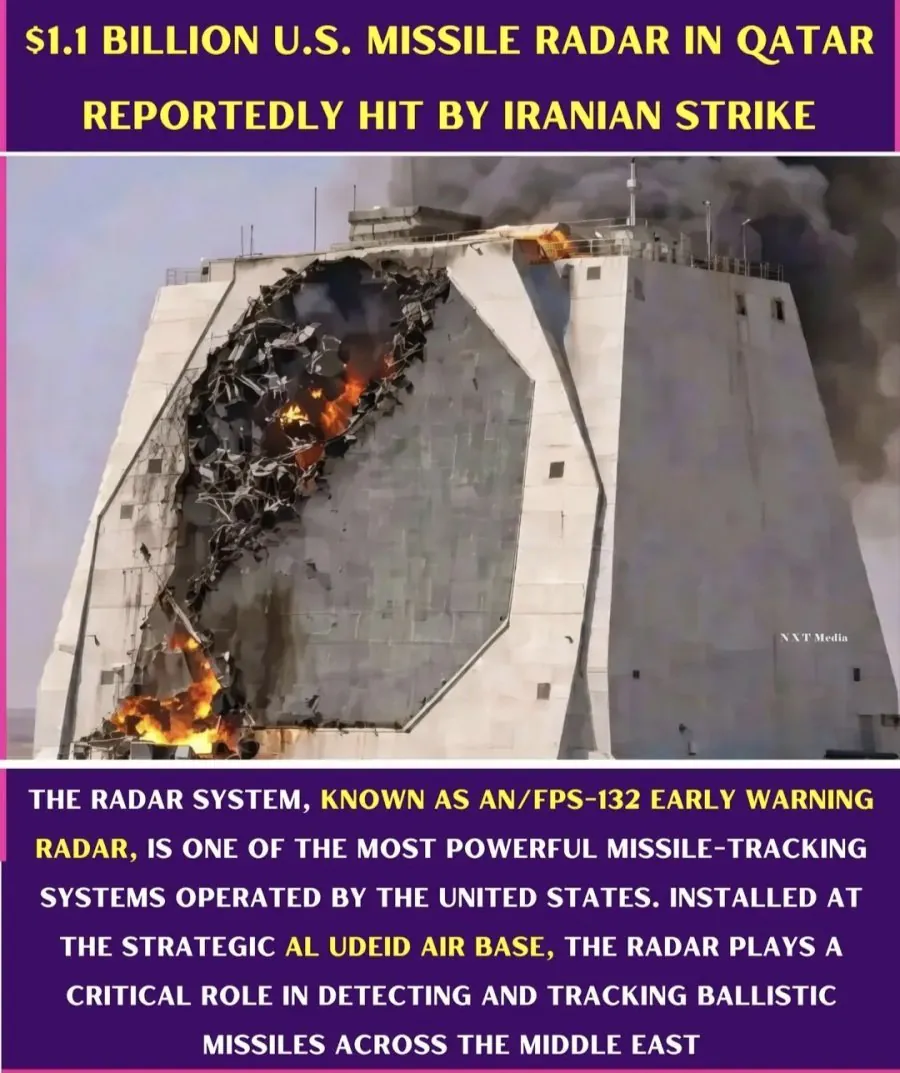 최근 이란 미사일 공격에 의해 파괴된 카타르에 있는 미군 레이더