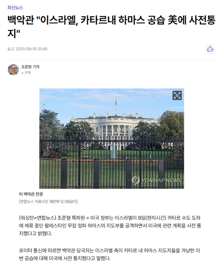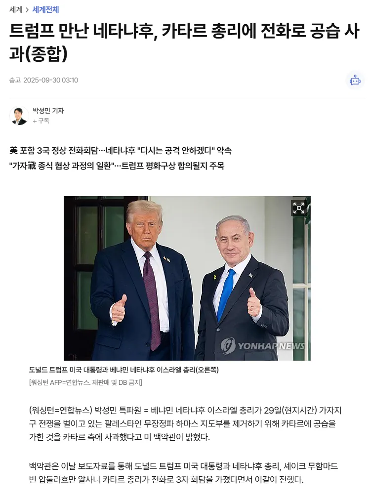 대표적인 친이스라엘 - 친서방 국가중하나인 한국일본 그외 40여개 국가가 규탄서명을 낼 정도로 이스라엘의 카타르 공격은 왜 한지 모르는 정신나간 미친짓이었다는 평가가 많음