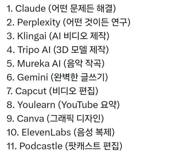 사용 분야별 AI 추천 목록