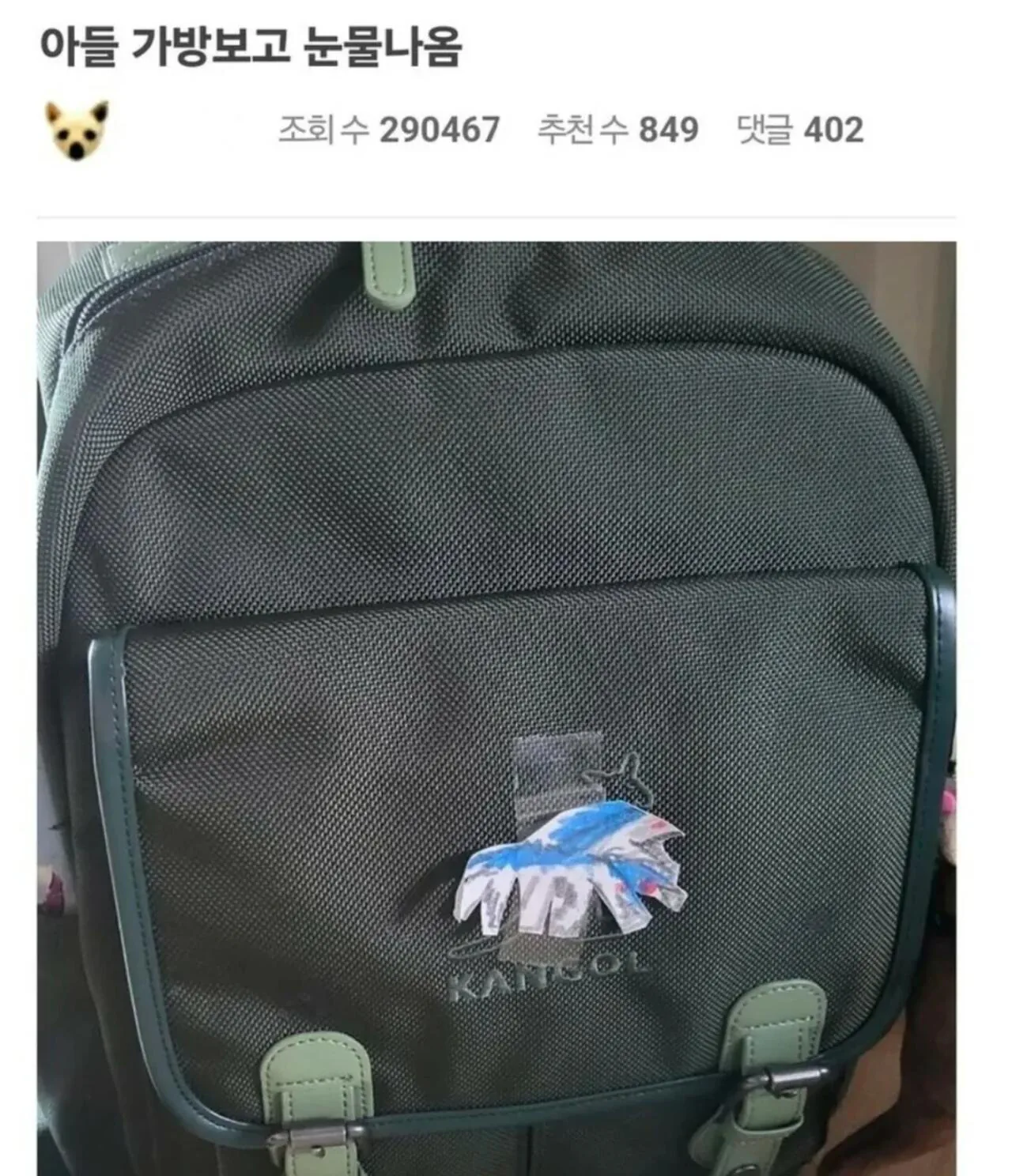 아들 가방보고 눈물나온 사람