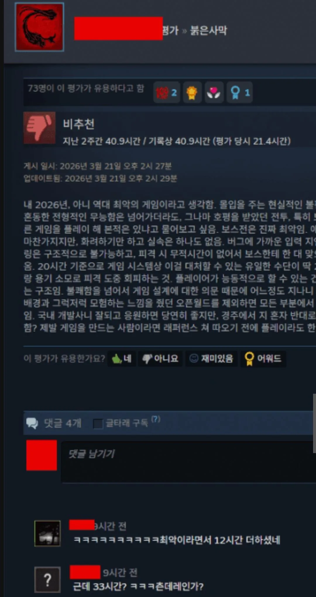 "붉은 사막은 2026년, 아니 역대 최악의 게임이다."