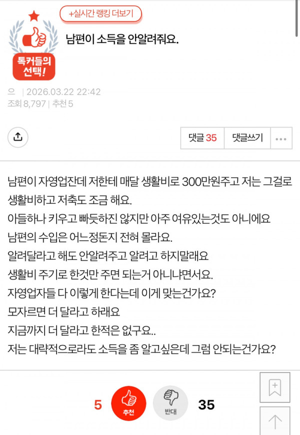 남편이 소득을 안알려줘요