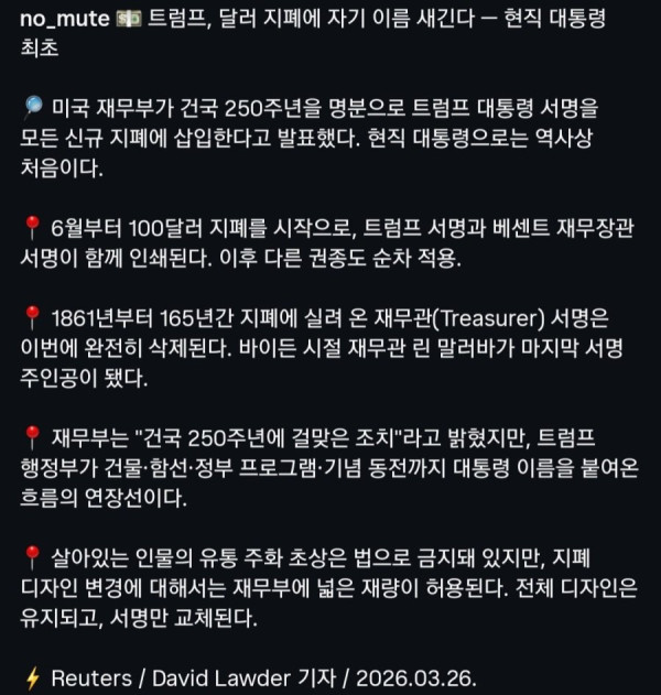 미국 역사상 최초로 달러 지폐에 들어 간다는 것