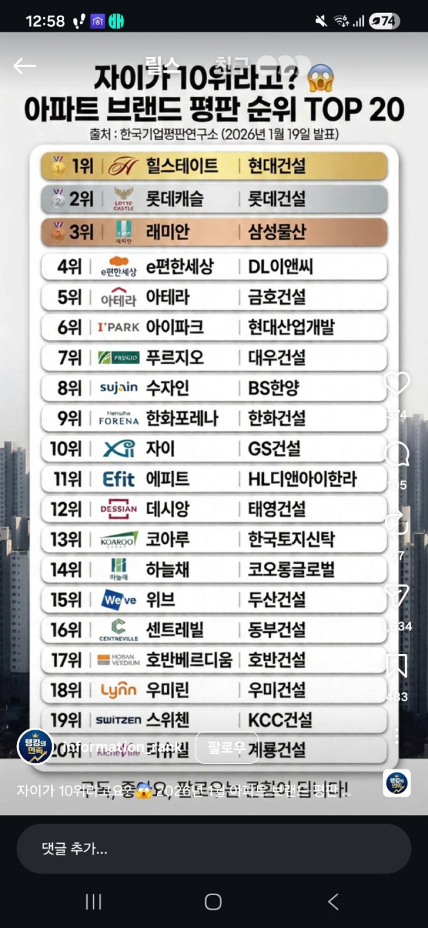 아파트 브랜드 평판 순위