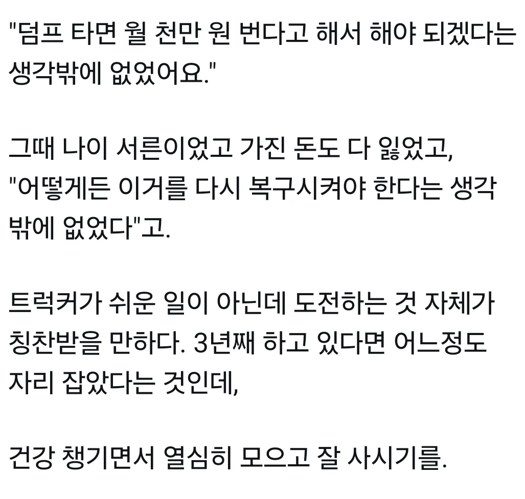 덤프트럭 몰며 월 1000 버는 여자
