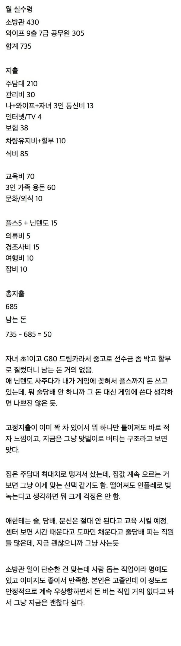 실수령 730만원 3인 가족 생활비