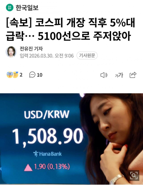 [속보] 환율 급등, 코스피 급락 ㄷㄷ
