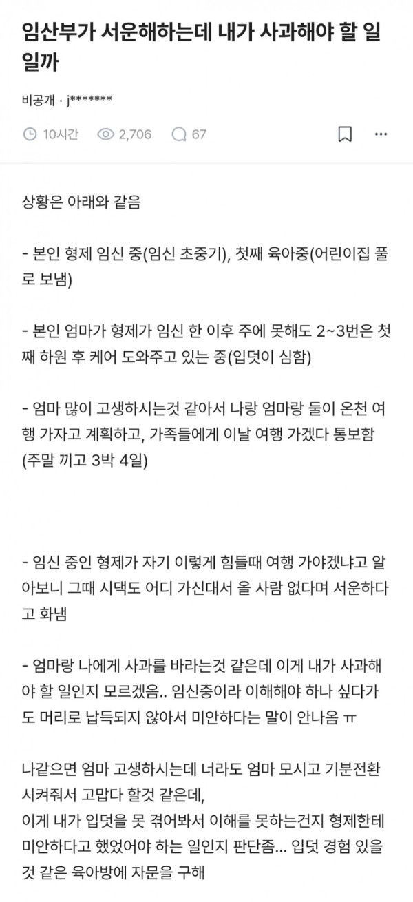 임산부가 서운해하는데 내가 사과해야 할 일일까