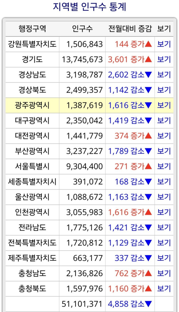 2026년 대한민국 3월 인구 통계