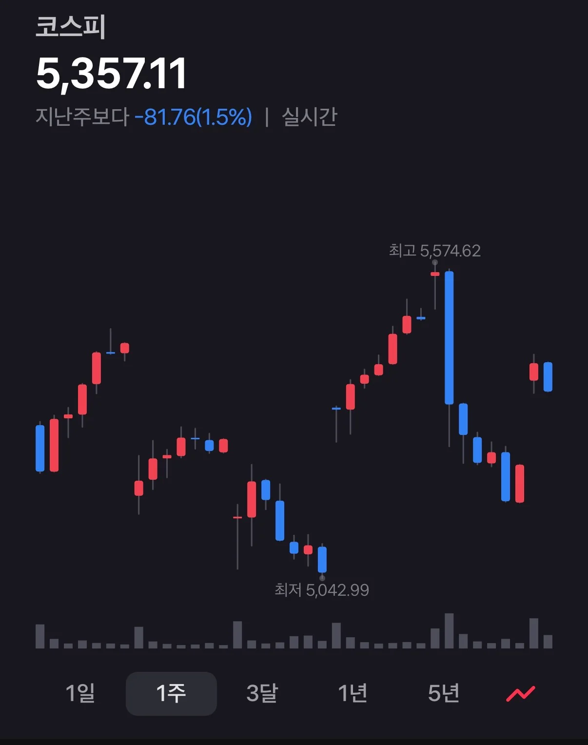 최근 일주일 코스피 그래프 꼬라지