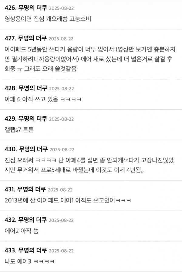 아무래도 휴대폰이랑 다르게 보통 영상용으로 쓰고 크게 무리갈만한건 잘 안해서 ㅋㅋㅋ 더이상 업데이트 지원 안해줘서 반강제로 못쓰거나 물리적인 고장 아닌 이상은 더 오래 쓰는 듯