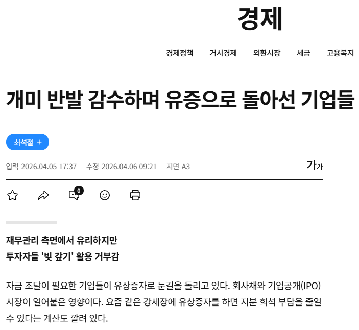 3. 개미들이 반발하지만 답은 유상증자밖에 없다고 함