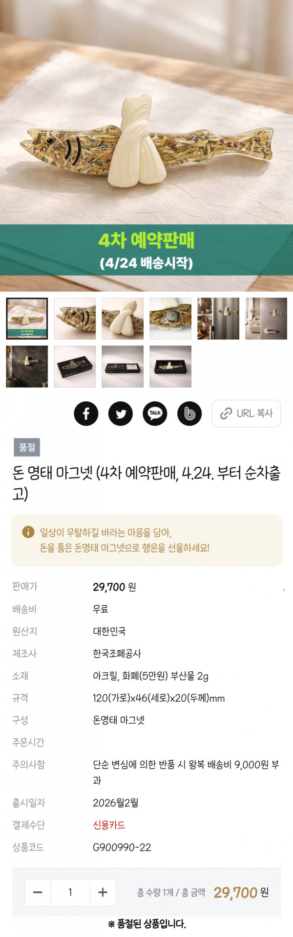 예판 족족 품절 된다는 한국조폐공사의 돈 명태 마그넷