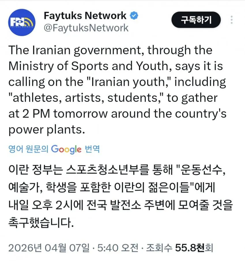 이란이 학생들한테 발전소 주변에 모여줄 것을 촉구