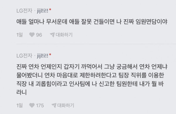 연차언제냐 물어본걸로 직괴로 신고한다함
