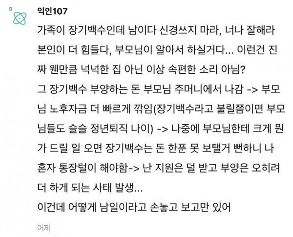 가족 중 장기백수 있으면 빡칠 수밖에 없는 이유