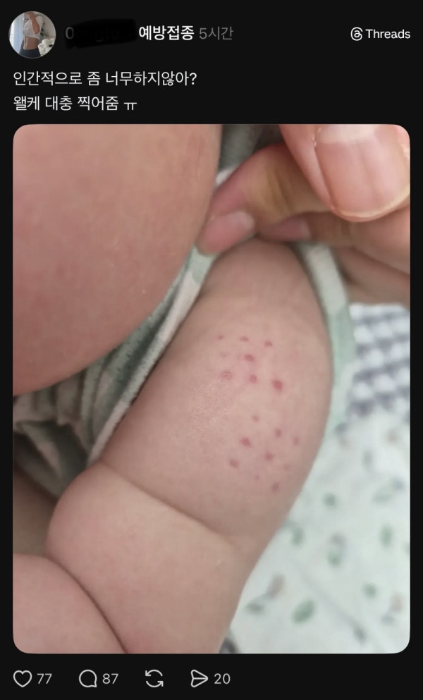 거진 평생 가는 주사자국인데 너무 한 거 같음..