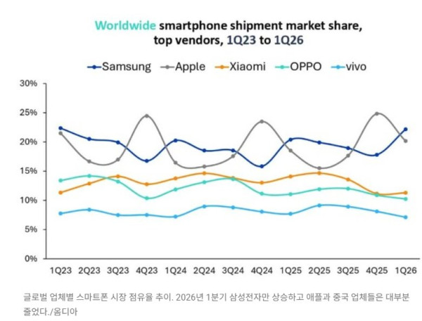 떡상한 갤럭시 스마트폰 1분기 점유율