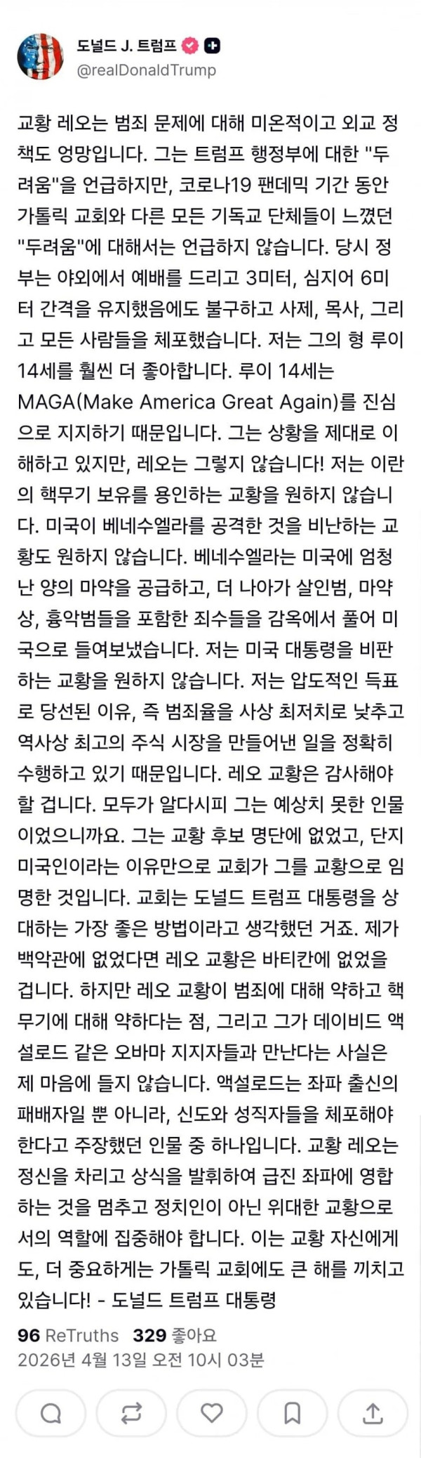 요약: 교황은 정치적으로 편향된 급진 좌파새끼고 자격도 없는데