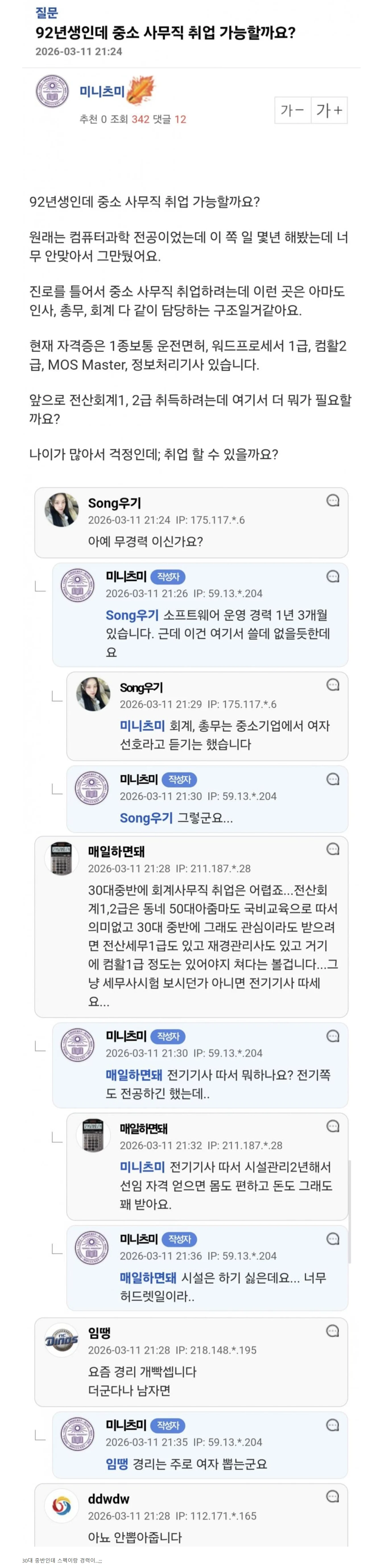 92년생인데 중소 사무직 취업 가능할까요?