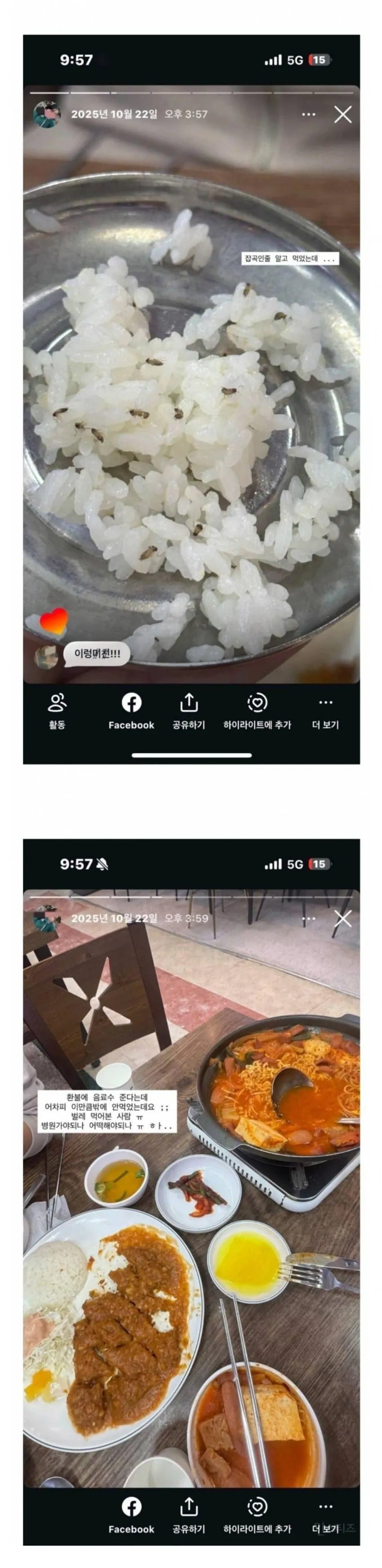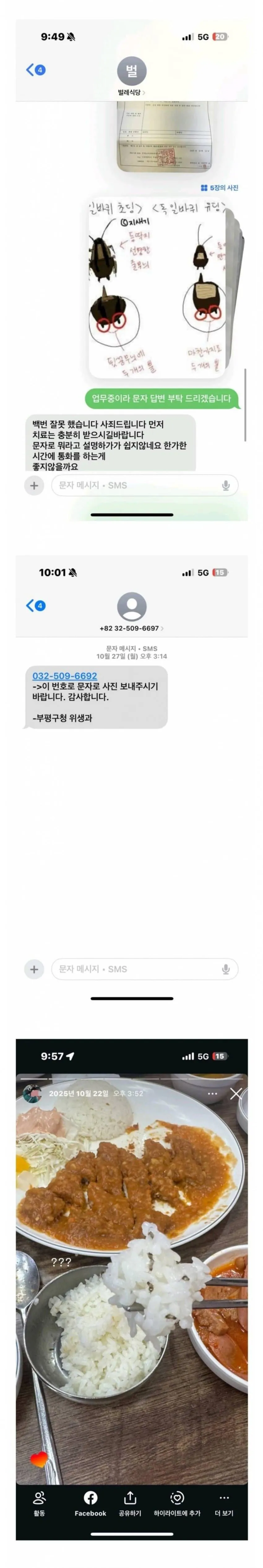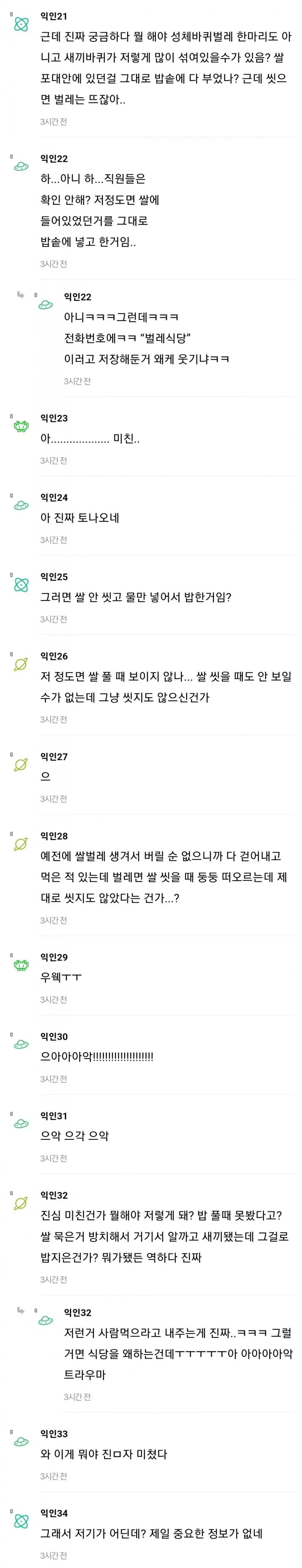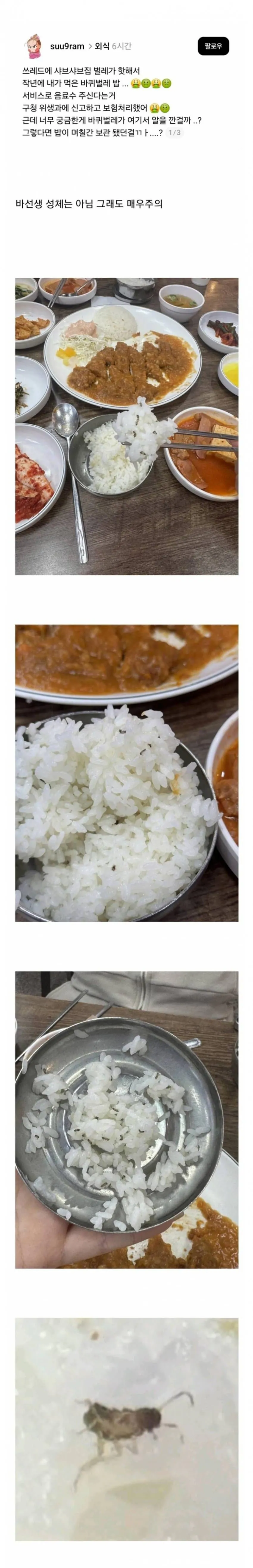 (혐주의) 바퀴벌레가 무더기로 들어 간 밥 먹은 썰