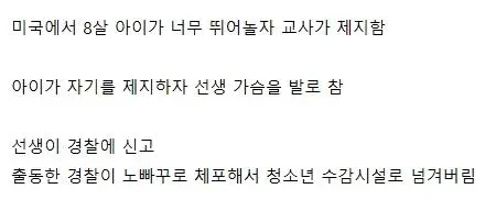 교사를 발로 찬 8살 미국 아이 참교육 현장
