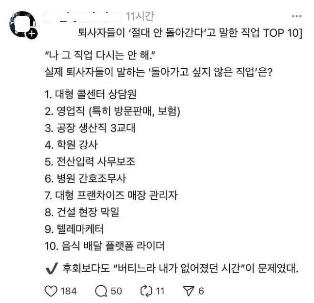 퇴사자들이 절대 안돌아가는 직업