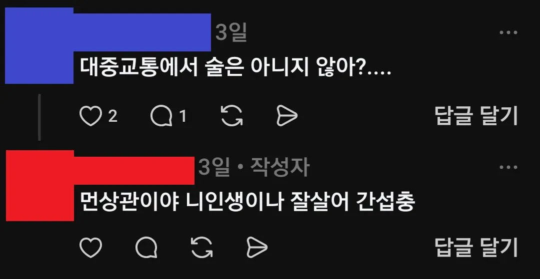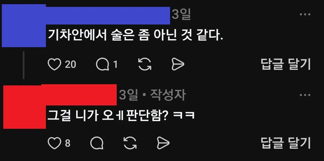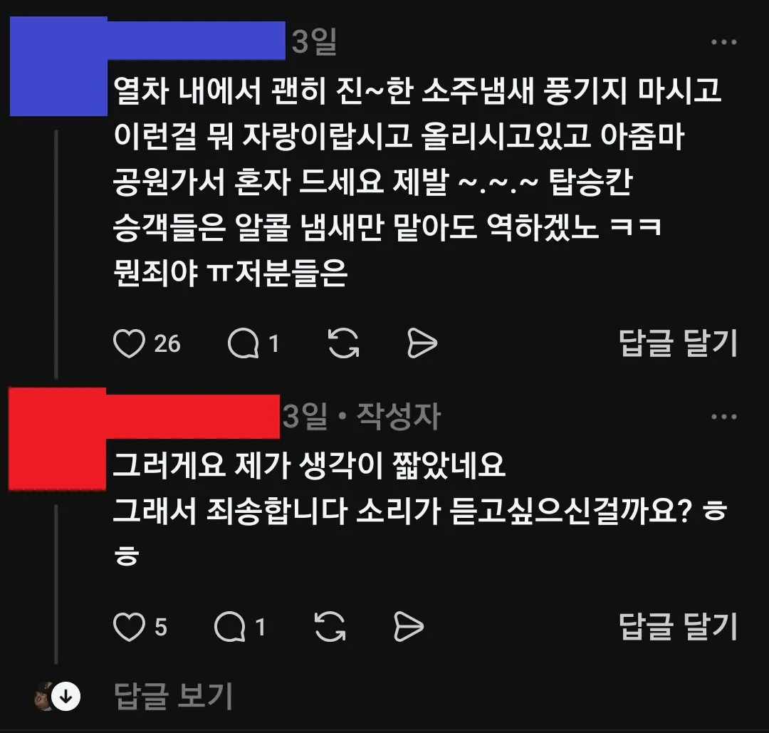 어떤 여자가 KTX에서 술마시는 걸 스레드에 올림