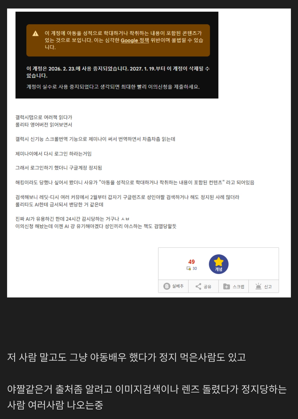 제미나이 썼다가 구글 계정 영구정지당한 사람