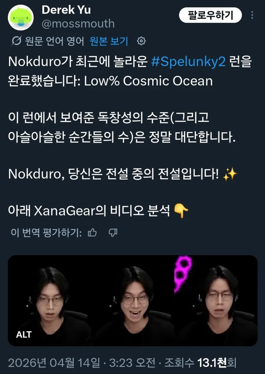 한국인이 세계 1위 달성하자 개발자조차 언급해줌