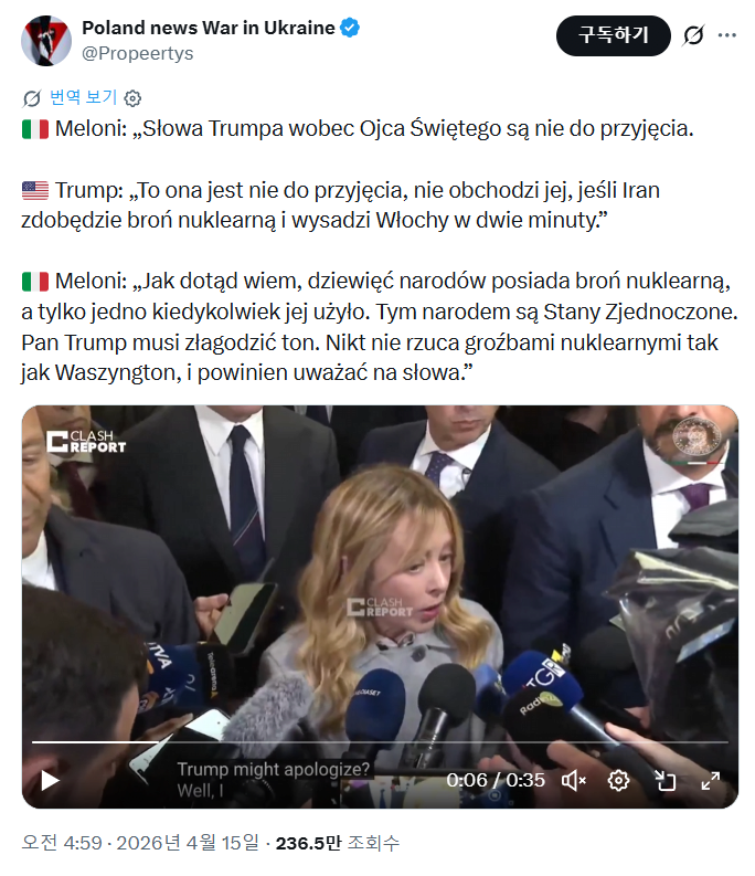 이태리 총리, "핵무기 가졌으면 위상에 맞는 자세를 보여라"