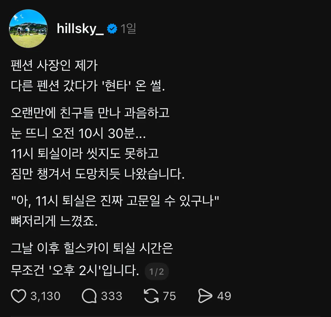 펜션 사장이 퇴실 시간을 오후 2시로 한 이유