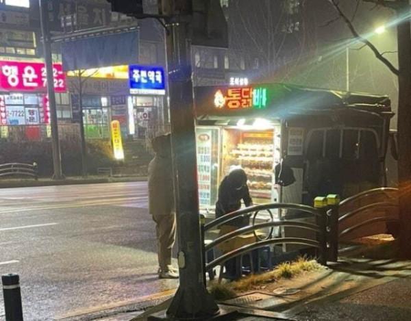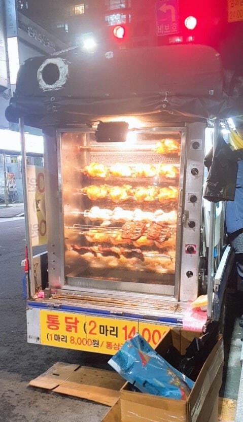 이 트럭이 서 있으면 아파트 입주민 채팅장서 오늘 통닭 트럭왔다고 제보를 하고