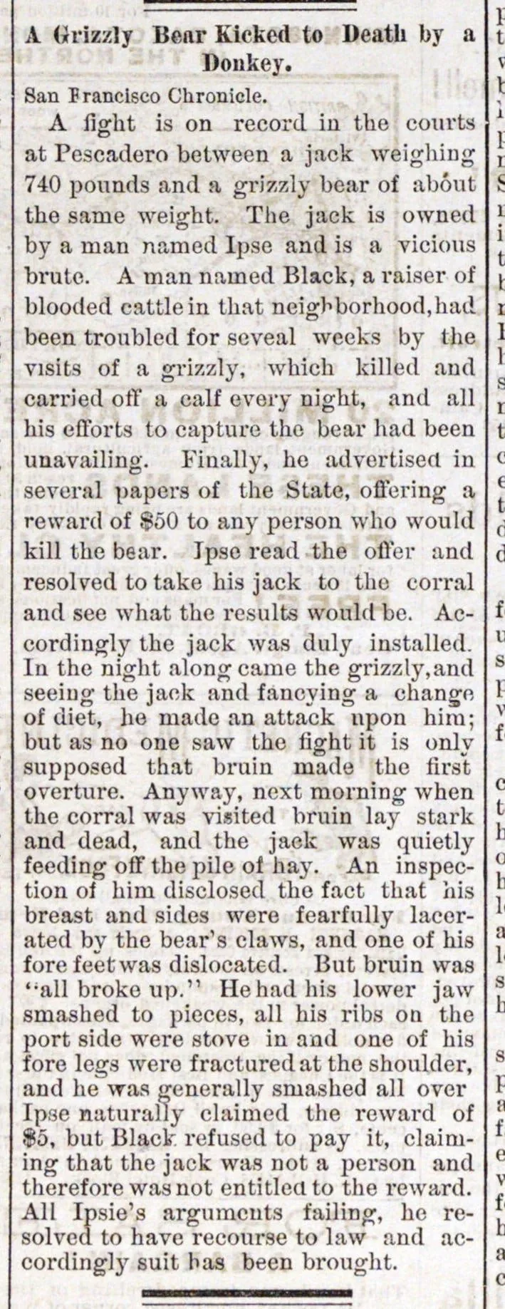 결과: 수컷 당나귀 (승) VS 그리즐리 베어