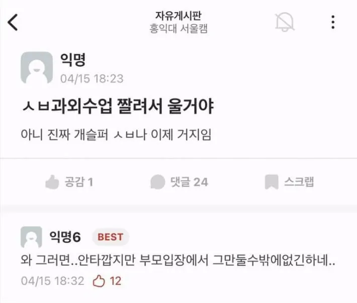 현재 난리난 홍익대 남학생들 근황